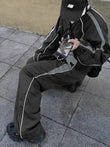 Dark Grey Contrast Piping Detail Trackpants