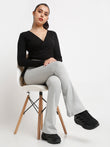 Grey Flare High Waisted Essential Pants With Pockets