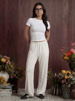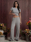 Ultra-soft pajama bottoms with a relaxed straight-leg fit and adjustable drawstring waistband, paired with a super-stretchy half-sleeve top featuring a crew neckline and cropped length. Comfortable, breathable, and true to size—made for effortless sleep and lounge.