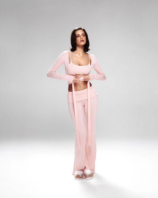 The Lavender Rib Drawstring Flare Pants blend softness and flow in one easy pick. With...