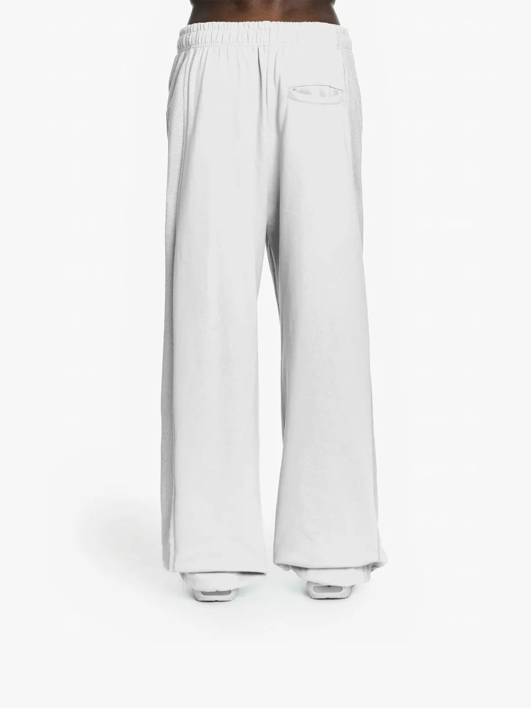 These pants are designed with a relaxed silhouette that adds subtle visual character. Featuring an elastic waistband for easy wear, functional side pockets, and adjustable bottoms for fit control, they balance comfort with a clean, contemporary look. A versatile everyday essential suited for casual and street-inspired styling.