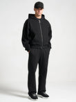 Man wearing a black hoodie and pants on a white background