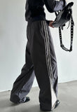 Dark Grey Striped Parachute Pants