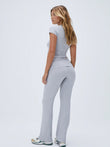 The Melange Fold Over Pants are the perfect mix of comfort and clean finish. Crafted in soft ribbed fabric, these grey pants move with you through the day. The fold-over waistband gives an adjustable fit while keeping it minimal. Ideal pants for women who want an easy, pulled-together look. A versatile pick when you just want reliable, flattering pants.